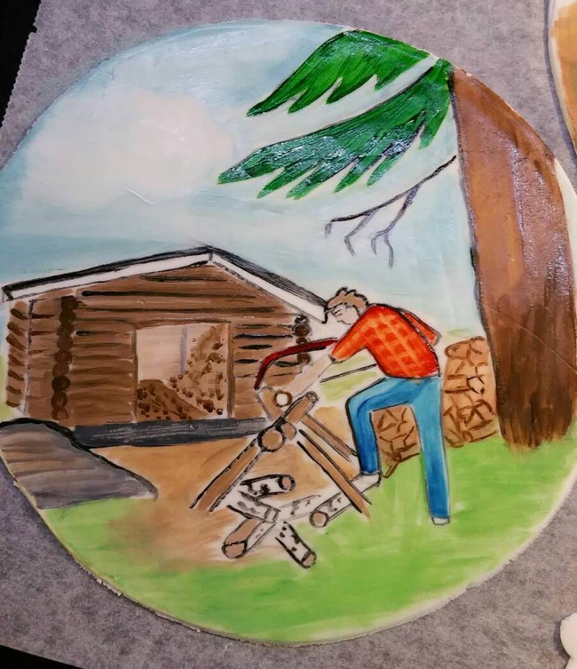 Pahoittelen jo valmiiksi, ettei tästä taida tulla kovinkaan lyhyt postaus :D Mutta kattele kuvat ja kuvittele kirjoitukset ;) Aloitellaan heti shokeeraavilla kuvilla! Kuinka sinä jukeat laittaa esille noin oudon kakkukuvan?!? kyllä, tälläistä tekstiä on tullut :D on se kummaa, kun asiakas tilaa sulta kakkua ja sie teet hänen toiveen mukaisen ja asiakas on enemmän kun tyytyväinen ni keltä se on pois. Taidankin seuraavana tehdä kikkeli ja pimppakakkuja ihan vaan sen takia, että tiukkikset voi stalkata sivuja ja taivastella lisää, että kyllä se akka on kamala...hyi en kyllä ite tollasia huolisi :D Noh, tiukkiksille on myös sit näitä sovinnaisempia kuvia, tosin näistäkin saattaa löytyä jotain hävytöntä tai muuten vaan huomauttamista :DSokerimassalle tekemäni piirrokset oli myös tilaukseen, Tuttavan isä nukkui pois ja hänen kakkuihin toiveena oli tehd sellaiset kuvat josta isä nautti suunnattomasti, eli hirven metsstys ja puiden teko. Eka kerran tein näin "mittavat" maalaushommat ja yllätyin itsekkin, kuinka hyvin n onnistui. Olen toki tehnyt pienempiä kuvia ja ysinkertaisemmilla yksityiskohdilla. Mietiskelin, että olisiko posliininmaalaus kursseista kuitenkin jotankin hyötyä myös tässä harrastuksessa.